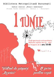 La Sediul Central „Mihail Sadoveanu”, pe data de 1 iunie, începând cu ora 10:00, artiștii Operei la bibliotecă vor interpreta arii din opere și operete dedicate copiilor compuse de George Stephănescu, Harlod Arlen, Leonard Berstein, Gherase Dendrino și Andrew Lloyd Webber. De asemenea, teatrul de păpuși „Licurici” va da viață unor noi personaje de poveste.