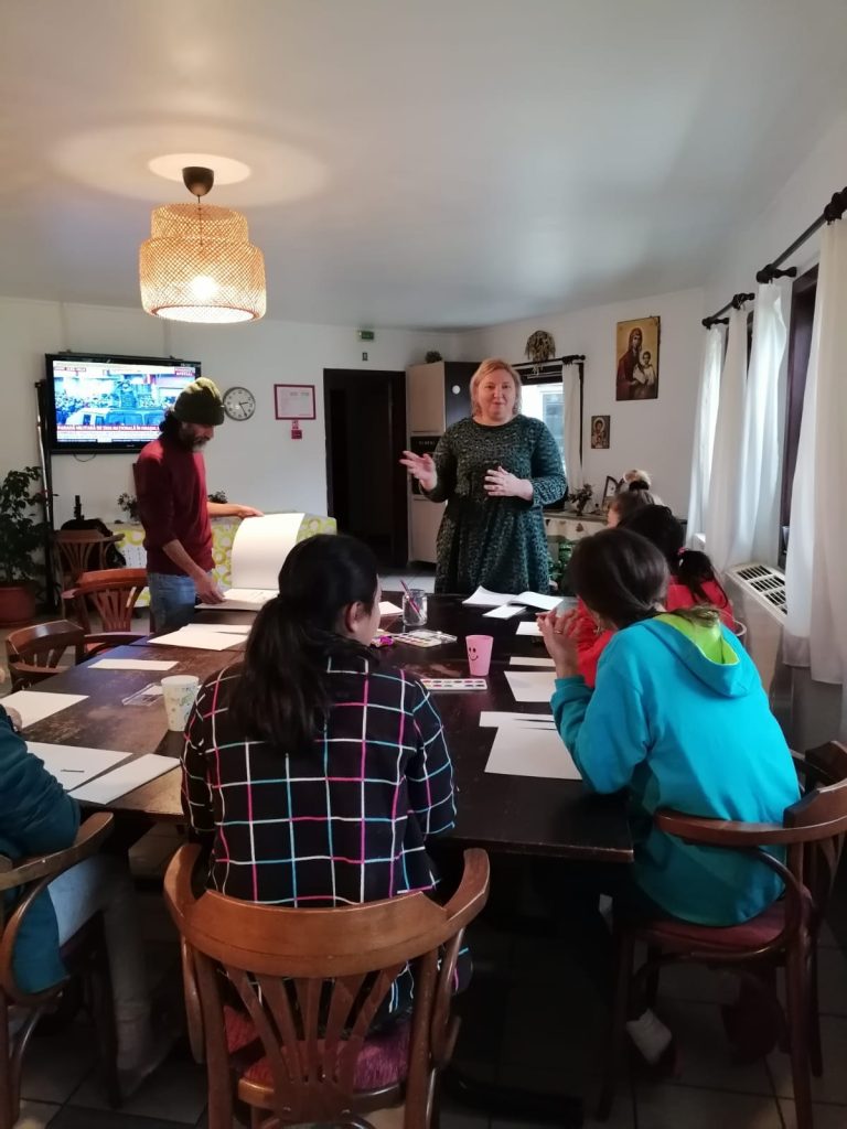 Prima întâlnire a avut loc în acest week-end, la Parohia Sf. Gheorghe de Pajiște din Mogoșoaia, alături de copiii fundației THE DOOR, atelierul fiind coordonat de Dhruba Mazumder, pictor din India, stabilit în București.