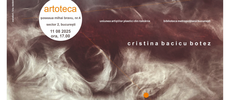 Primăria Municipiului București (PMB), prin Biblioteca Metropolitană București (BMB), în parteneriat cu Uniunea Artiștilor Plastici din România și cu Filiala Râmnicu Vâlcea a UAP, vă invită luni, 11 august 2025, de la ora 17:00, la vernisajul expoziției de fotografie digitală „Vară și fum”, semnată de artista Cristina Bacicu Botez. Evenimentul va avea loc la Galeria Artotecii BMB, situată pe Șoseaua Mihai Bravu, nr. 4.